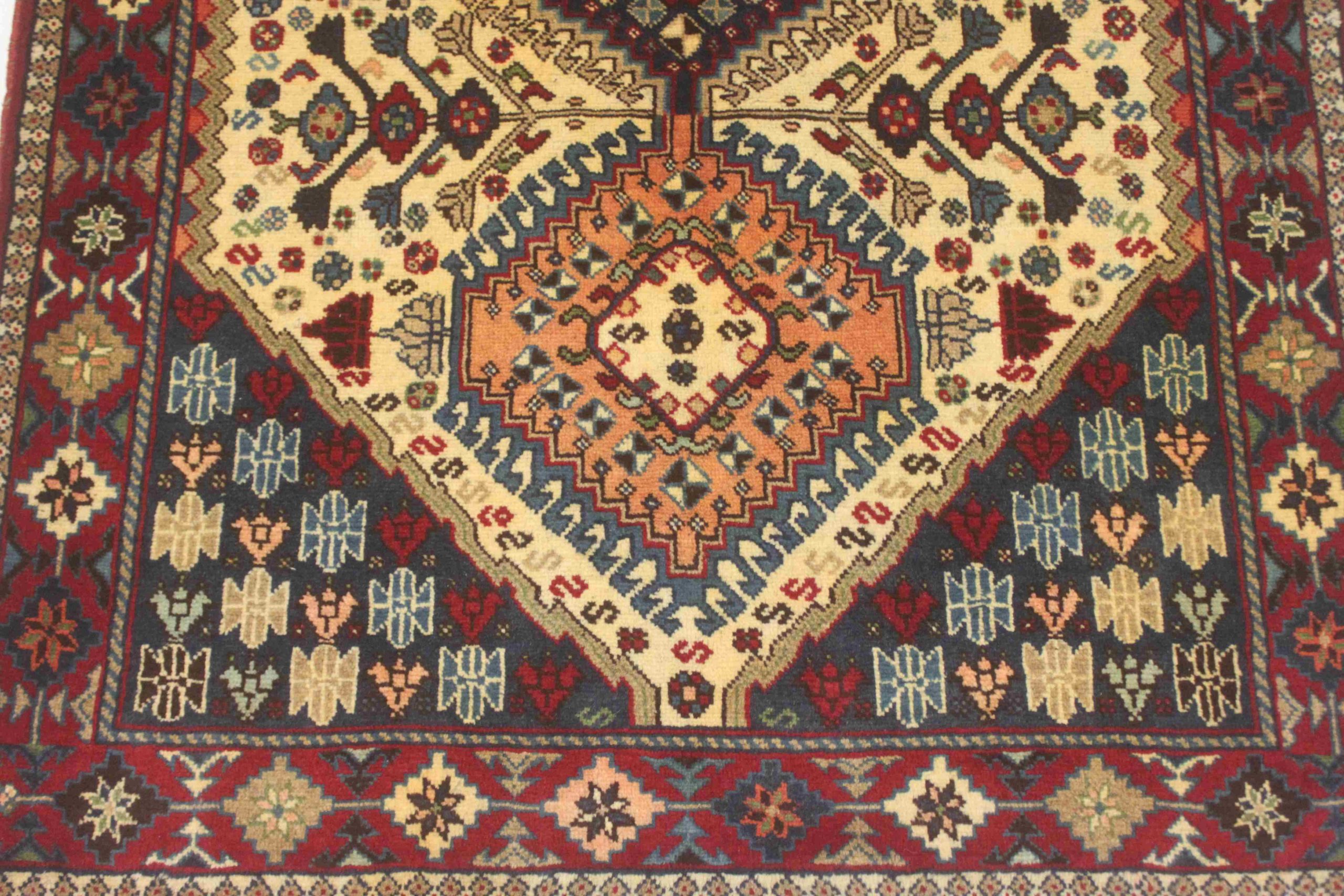Hand-knotted Yalameh rug with handspun wool